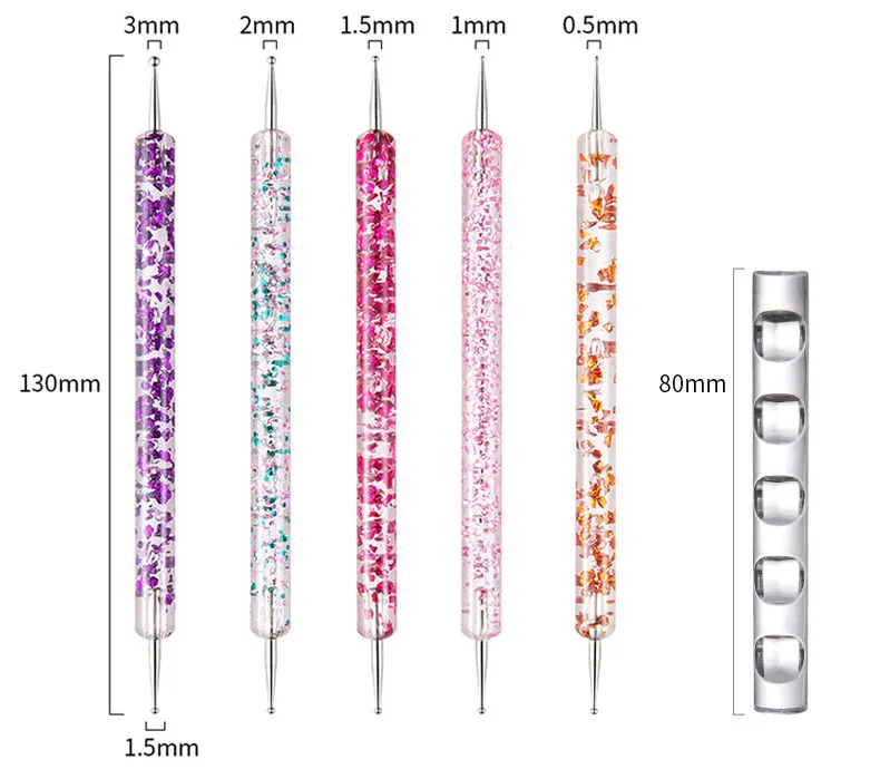 5 Double - ended Rhinestone Pens: The large and small tips of the rhinestone pens cooperate to create exquisite patterns. They can be used for placing rhinestones, dots, and circles.